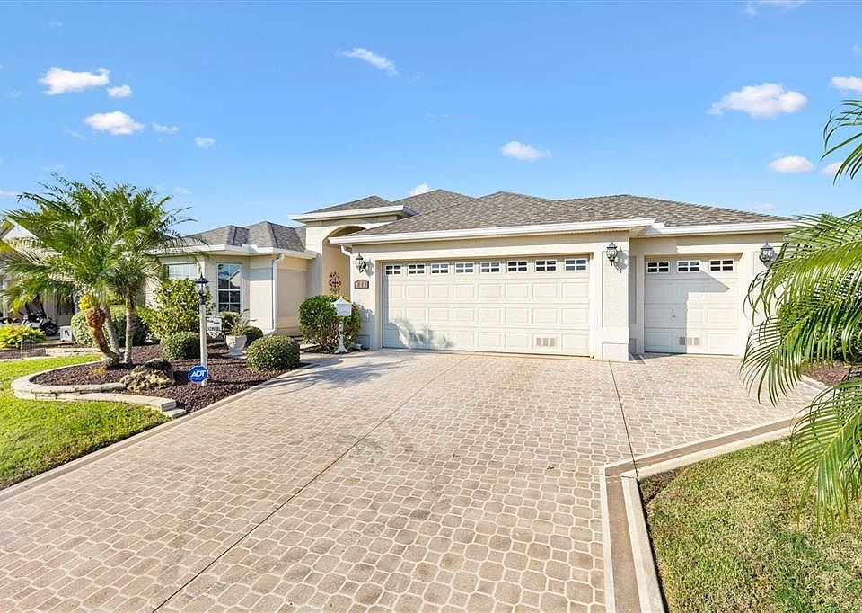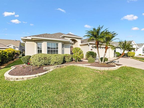 Welcome to this Three Bedroom, Two Bathroom 1939 Square Foot "Lily" Designer Home Located in The Village of Hemingway in The Villages, Florida! This home features a spacious Open Floor Plan, a Formal Entry, Tile Floors in the Living Area, Kitchen and Bathrooms, and No Popcorn Ceilings! There is a formal Dining Area, an additional Eating Nook off of the Kitchen, Corian Counters in the Kitchen and Bathrooms, an Indoor Laundry Room and Crown Moldings throughout the home. The Roof and HVAC were installed in 2024, the Washer, Dryer, and Refrigerator are Three Years Old, and the Microwave is less than a year old. Additional Features include a Tray Ceiling in the Primary Bedroom, a Roman Shower in the Primary Bathroom, and an Enclosed Lanai with Privacy Shades. The Property is nicely Landscaped, and includes a Patio with Pergola, an Epoxied Garage Floor and a Golf Cart Garage. The home is being sold PARTIALLY TURNKEY and the BOND WILL BE PAID at closing! It is located near shopping, restaurants, medical facilities, and is close to Recreation Centers, Pools and Town Squares. Come take a look at this home as it will not be on the market for long!