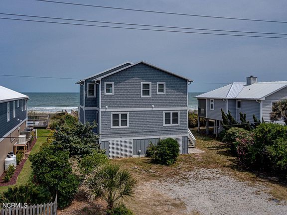 If looking for an ocean front home to start making your memories then take a look at this one. Located near Fort Fisher this home has 4 bedrooms and 3 large baths. Home was put on the lot in or around 1952 and survived hurricane Hazel. In 2019 the entire home was redone and another level was added. It took the home from a 2 bedroom 1 bath home to what it is now. It has been used as a second home for family and friends since then. The rocking chair porch and deck have wonderful ocean views. Home is being sold furnished with just personal items being removed.