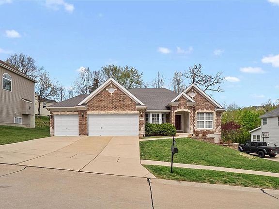 Beautifully crafted ranch home, located in the Lindbergh school district! Showcasing 5 beds, 3 full baths & a 3-car garage, this home is tailored for comfortable living. Upon entering, you will be greeted w/ an open layout, wood flooring throughout & plenty of natural lighting. On the main floor, check out the 4 beds, 2 full baths, a large kitchen, formal dining area, inviting living space equipped w/ a gas fireplace & a breakfast room! The exterior features an in-ground sprinkler system, the landscaping has been professionally maintained & the stamped concrete patio is perfect for your Summer gatherings. The finished basement features a bedroom/office, bonus room, full bath, playroom, exercise room, game room, a surround sound home theater for exciting cinematic experiences & a custom oak bar / kitchen area. For the wine connoisseur, don’t miss the custom-designed wine cellar, perfect for showcasing your collection. This home seamlessly combines modern amenities w/ timeless charm! Additional Rooms: Wine Cellar