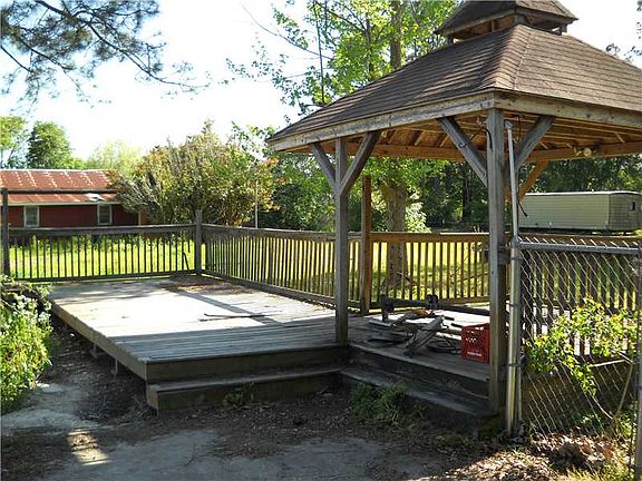 Acadian Home a little country charm and character to boot! Tongue and groove walls, brick floors in the kitchen area, three sets of french doors to the outdoors, upstairs two large bedrooms, master downstairs, wood burning fireplace, covered patio, wooden deck and a gazebo. This home has a lot of potential but needs a little TLC. All measurements are m/l.