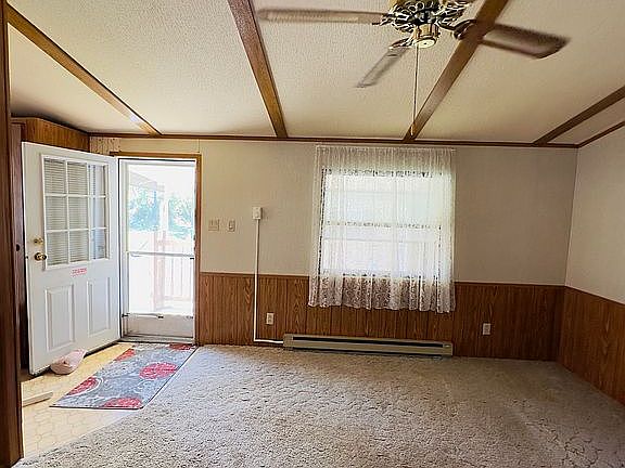 Two bedrooms and one bathroom in a quiet Evergreen Mobile Park. It includes electric stove, refrigerator, washer and dryer. Lot rent $399 + water. Cannot be moved.