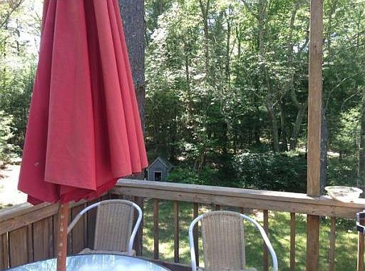 Located on a beautiful wooded 1.4 acre lot this Cape style house is a winner! You're greeted by a open floor plan that offers a bright family room with a brick fireplace and formal dinning room perfect for large family dinners. The eat-in kitchen offers plenty of cabinet space and opens to a custom deck over looking the private backyard. The first floor includes a half bath with full laundry and music room with private side entrance. The second level offers a good-sized master, a full bath and two additional bedrooms. This home offers a great bang for the dollar!