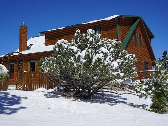 Nestled in the trees and up on a hill, this cabin on over 15 acres is situated in a picturesque setting with very special views of both the acclaimed Sangre De Cristos and geological topography of the Wet Mountains. Nice decking affords relaxation and visits by friendly neighbors such as deer, birds, and rabbits, just to name a few. Lots of custom touches make this cabin unique. Windows galore allow for stunning views. Dog-friendly fenced areas. Great room has vaulted ceilings and floor to ceiling brick fireplace for a cozy evening in. Master bedroom suite has a romantic private deck. Fenced in garden space ready for planting. Fantastic sun room that spans the length of the house for enjoying the vistas and solar warmth. Mountain living at its finest!