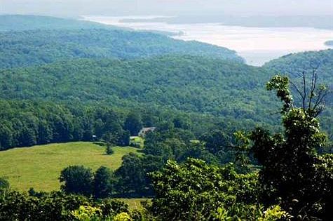 One of the most BEAUTIFUL FARMS you will ever see..95 AC of rolling pasture land with mature shade trees for the livestock. Ponds, springs, wet weather creeks, fenced, old barn, corral and horse stables all have views of BULL SHOALS LAKE. Relax on the back deck of your home, viewing the herds of deer, flocks of turkey, ducks in the pond or just sit and watch the sunrise over Bull Shoals Lake. This 3 BR home features 2 master suites, split BR floorplan, vaulted ceilings, Lake Access only 4 miles on paved rd.