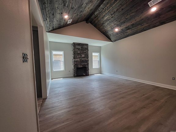 Discover this stunning new construction home at 933 N Jeff Davis Ave in Jacksonville, AR! Ideally located between the Little Rock Air Force Base and convenient interstate access, this home offers modern design and upscale finishes in one of the best locations around. The spacious living room showcases a custom dark-stained wood vaulted ceiling and stone fireplace, creating a warm and inviting focal point. The kitchen features a large island, all-wood cabinets, solid surface countertops, custom tile backsplash, designer lighting, and a generous dining area. With 9-ft ceilings, abundant natural light, and a primary suite boasting a luxurious walk-in tiled shower, this home combines comfort and craftsmanship. Schedule your private showing today!