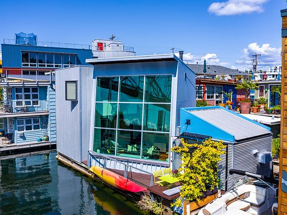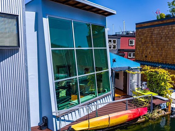A rare opportunity to own a floating home in Fremont, the center of the universe. Contemporary vibes w/ lofty 15 foot ceilings which flood your space with gentle light. Two beds/1.5 bath, floating home with owned moorage. Beautiful sleek kitchen includes practical eat-in or hang out space. Hidden custom built-in spaces everywhere you look. Cruise the lake on your boat from right outside your door. Convenience overload w/ Burke Gilman, Adobe, Google, amazing restaurants all at your fingertips.