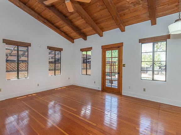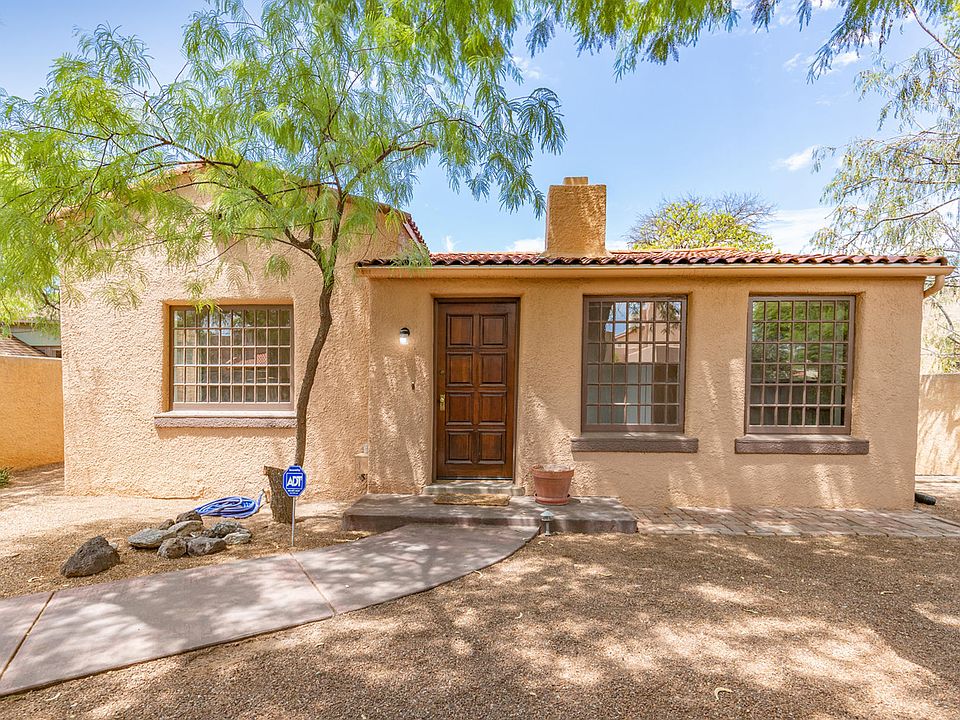 Estate sale. Classic Sam Hughes 2BR/1.5BA home and studio. Fantastic location! Just a few blocks from the University of Arizona. Close to Himmel Park, 3rd St bike path, Tucson Streetcar, restaurants and more. The amazing home has great curb appeal, high vaulted wood ceilings, beautiful hardwood floors, gorgeous wood cased windows, cozy fireplace in living room, high vaulted wood beamed ceilings in family room, knotty pine kitchen cabinets, office and separate studio. Large walled yards. Termite warranty with Truly Nolen. Please note there is no off street parking. Parking in street requires a permit. Please read agent only remarks about the alarm and the estate sale requirements.