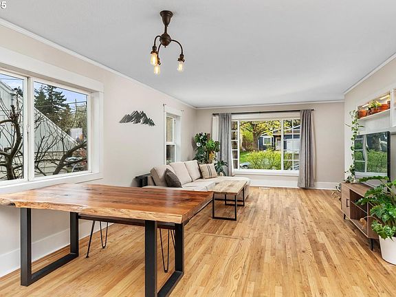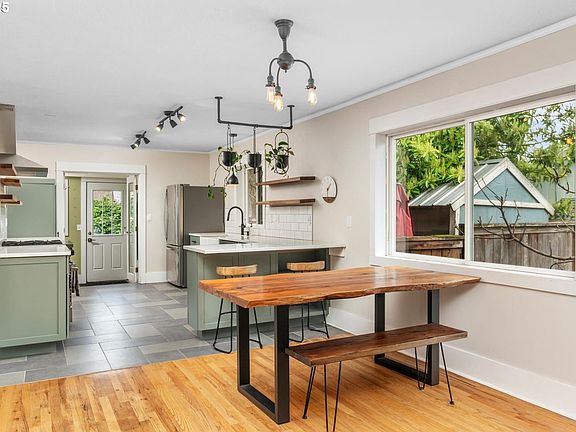 This is the one you’ve been waiting for: Immaculately kept, tastefully updated, and perfectly located just steps from the Dekum Triangle and Woodlawn Park—welcome to your dreamy NE Portland bungalow! Bursting with natural light, open living spaces, and incredible attention to detail, this 2-bedroom, 1-bathroom home has it all: a fully remodeled kitchen with soft-close cabinets, custom cutlery inserts, Italian tile flooring, open shelving, quartz countertops, a bar top, and tile backsplash—designed for those who love to cook and entertain. The open-concept floor plan flows effortlessly from the living room to the dining area and kitchen, creating a space that feels both cozy and connected.Step outside to a beautifully landscaped backyard with gravel hardscaping, a spacious back deck, and fruit trees lining the side yard—perfect for summer evenings, weekend gatherings, or simply soaking up the sun. The detached garage has been thoughtfully renovated with new flooring, finished walls and ceiling, updated electrical, and a new sliding glass door, making it an ideal flex space for a studio, home gym, or creative retreat.Located in one of Portland’s most vibrant and walkable neighborhoods, just blocks from cafes, parks, and local favorites—this home offers the perfect combination of style, location, and flexibility. Don’t miss out—come check it out today! [Home Energy Score = 7. HES Report at https://rpt.greenbuildingregistry.com/hes/OR10186961]