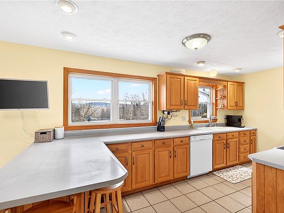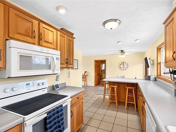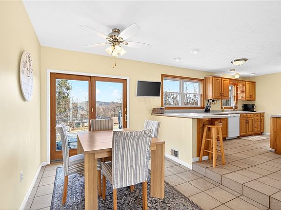 Well-maintained ranch offers exceptional indoor & outdoor living with space, flexibility and comfort throughout. Open concept kitchen & dining areas anchor this home, featuring generous counter space, breakfast bar, and large windows, providing natural light, ideal for everyday living & entertaining, with access to the multi-level deck and outdoor living space. Inviting floor plan features a bright living room with hardwoods and charming brick fireplace, adding to this home's character; Primary bedroom provides a relaxing retreat with soft neutral tones, WIC and an updated ensuite with double vanity and tiled tub surround with built-in shelving. Dedicated office or flex room offers the perfect space for working from home or hobbies. Comfortable bedrooms feature generous layouts, including a cozy wood-paneled bedroom, are full of character. Lower level greatly expands the living space with a large finished family room, ideal for entertaining, recreation or movie nights. Additional lower level areas include dedicated home gym, updated full bathroom and spacious laundry room with storage. Outdoor living is a true highlight of this beautiful home ~ sprawling multi-level deck provides ample space for relaxing, dining and entertaining, complete with multiple seating areas and room for outdoor gatherings. Deck overlooks half-acre parcel, with peaceful wooded views, offering privacy and a serene setting. Above ground pool, adds to summer enjoyment - Pool Days are the BEST Days. Blending comfort & functionality, this home is ideal for those seeking space to live, work and entertain, both inside and out!