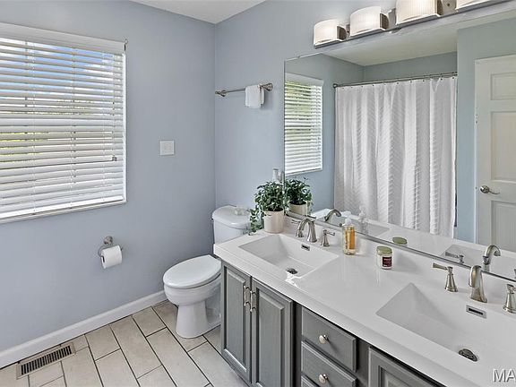 Incredible opportunity for a possible VA loan assumption at just 2.625% for qualified buyers! This beautifully maintained 2-story home offers over 2,700 sq ft of thoughtfully designed living space, featuring 4 spacious bedrooms, 3.5 baths, and a functional finished basement with full bath. The main level showcases elegant engineered hardwood flooring throughout, a formal dining room perfect for entertaining, and a bright, open-concept living area. The gourmet kitchen is a standout, equipped with granite countertops, a large center island, stainless steel appliances, and cozy breakfast nook. A sliding barn door adds charm and leads to a versatile bonus room ideal for a home office or playroom. Upstairs, retreat to a luxurious primary suite with vaulted ceilings, dual vanities, walk-in closet, soaking tub, and separate shower. Three more generously sized bedrooms and a full guest bath complete the upper level. Convenient upper level laundry adds everyday ease with laundry close to bedrooms. The finished lower level includes a massive rec room (26x20), a full bathroom, and a large storage area (27x13). Step outside to a low-maintenance composite deck—perfect for outdoor gatherings. Major updates include a new roof (2025), HVAC (2025), sewage ejector pump (2025), and water heater (2022). Conveniently located with easy access to I-64 and just 15 minutes to Scott AFB. Close to O'Fallon Family Sports Park w/sports fields, Splash Pad, Pavilions & 2.1 mile walking trail.