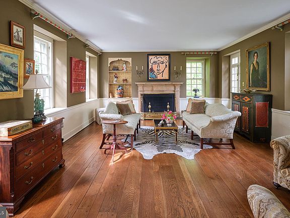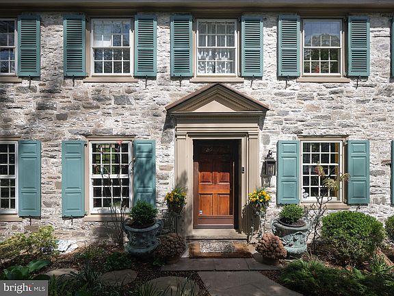 Located in the desirable North-side of Bryn Mawr and walkable to all of Bryn Mawr’s amenities, this gracious, 4 bedroom, 4.5 bath, stone colonial home is special in every way. It has lovely, generous proportions, large windows with deep sills, spacious rooms, random width and length pegged floors on the first floor, and glimmering wood floors throughout. It has four plus bedrooms, with the possibility of a fifth ensuite bedroom on the first floor. A Pennsylvania blue stone path leads to the front door and into an entry hall with access to the sunken living room on the left that features high ceilings, many large windows, a wood fireplace, and French doors to a blue stone-floored terrace to enjoy the arboreous environment. From the center hall, straight ahead is a powder room, an office/den with built-ins, and a large bay window overlooking the expansive yard and lovely views of the property, as well as an egress door to the Pennsylvania blue stone terrace. To the right of the center hall is a bright, ample-sized formal Dining Room that opens to a unique, ceramic-tiled floored gourmet kitchen that incorporates an eat-in area, working fireplace, walk-in pantry closet, double oven, six-burner stove, Mercer tile accents, and two sets of French doors to a newer raised deck perfect for outdoor entertaining and relaxing. Next to the kitchen are the back stairs to the basement and the second floor and an outside egress door to the front of the house. Beyond these stairs are a large family room, full bath, and another set of French Doors leading to the outside deck. (This room could also serve as an ensuite fifth bedroom.) The center hall’s turned staircase takes you upstairs to a landing and door access to an upper deck and a long hallway on the second floor. The primary bedroom is secluded to the right with large closets, a dressing area, and ensuite bathroom. Down the long hallway, there are three spacious bedrooms with walk-in closets. Two bedrooms share a Jack and Jill bathroom and the other is ensuite. The basement, running the entire length of the house, has a working fireplace, adds approximately 1,400 sq ft of space, and awaits your imagination with sunlit windows on three sides and an egress door to an outside covered porch. This level also has a laundry area, plenty of storage, and a two-car garage. This enchanting property has a mostly level lot and mature perimeter hedgerows and trees. It’s exceptional and convenient location is within walking distance to SEPTA (R5), Bryn Mawr's coveted farmers market, many boutique shops and delicious restaurants, Harriton House, Ashbridge Park, and in close proximity to some of Pennsylvania's best public and private schools. This property is a must-see!