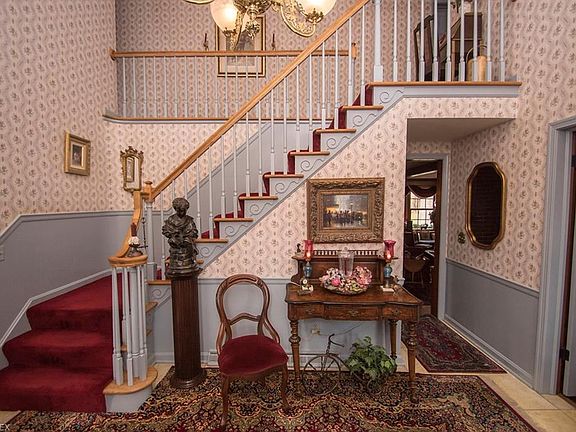 Stately Colonial on 1 acre picturesque setting. So many wonderful features. All brick exterior, circular drive, 2 story foyer, abundance of custom trim & built-ins, huge rooms thru-out, 1st floor bedroom suite, sun room, 5 BR, 3.5 and 1/2 Bath, finished walk-out lower level, den with wet bar, newer roof and beautiful views from every window!