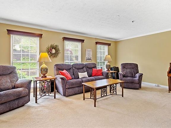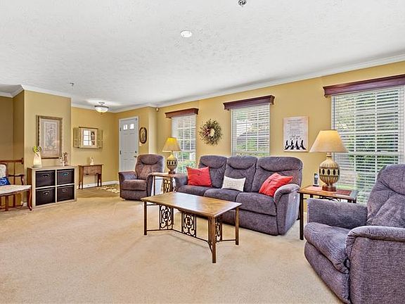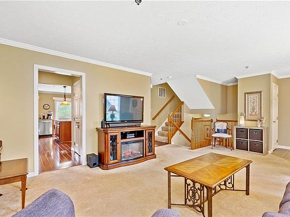 Super Location! This Classy Townhome situated at the end of the Cul de sac features a Unique Private Courtyard type Setting. Bright and Inviting Living Room with Crown molding, an Extra-large, big Kitchen with a newer 5 burner gas range featuring an adjoining Butler's Pantry-lots of cabinet storage, center island, and large dining area-either formal or informal. This unit was built with extra bump-out footage in the Kitchen, Dining area, and upstairs Bedroom making it larger than some. Owner's bedroom w/en suite includes spa tub, separate shower, double bowl sink, and walk-in closet. 2nd floor Laundry. Finished game room with an electric fireplace is great for workouts, a play area, or just great relaxation. Super Extra shelving & a storage unit in garage. Deck off of the Kitchen is perfect for breakfast, coffee, or cocktails and overlooks a natural wooded setting, private and tranquil This is low maintenance living with Great Convenience to Dining, Recreation, Shopping R19, and I79.
