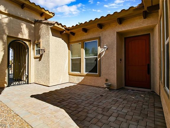 This former model home in the Tuscany community of Henderson offers luxurious living with its prime location overlooking the 10'th green of the golf course. Inside you'll find elegant travertine flooring, upgraded cabinets and countertops, creating a high-end atmosphere. The home is equipped with 2 new A/C units for climate control. Crown molding adds a touch of sophistication to the decor. The property is part of a community that includes a center for residents enjoy.