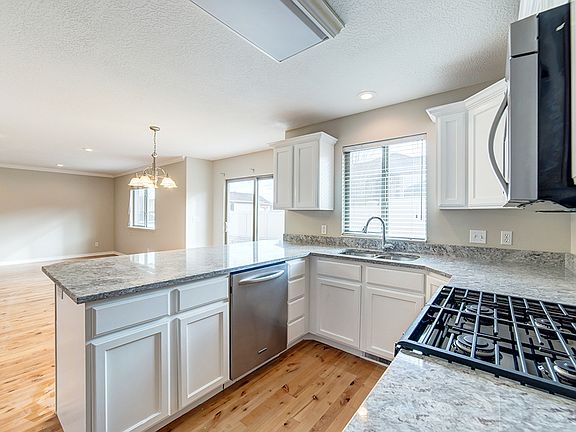 Very cute west facing home ready to move-in! Gorgeous wood floors! Brand new carpet, paint. New Stainless steel appliances! Fully landscaped and ready to go. Quiet street with great RV parking on the side. Lots of built-in storage shelves in the garage. Large open, fully finished basement! This is a great house!