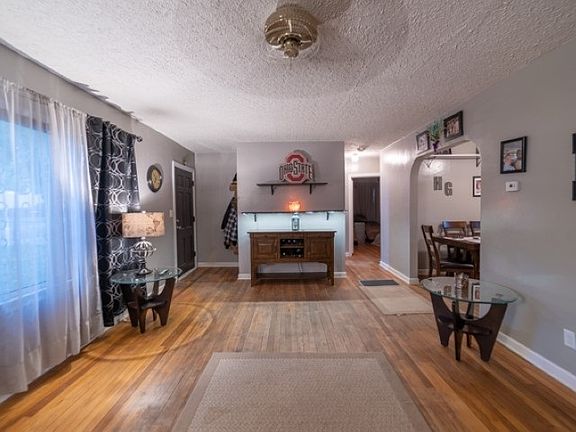 Absolutely darling and move in ready. Check out this cute ranch style home! Beautiful hardwood floors, tastefully decorated, big living room, nice kitchen and a large dining room. New water heater, eco water softener. Fresh, new paint and baseboards inside. Permanent siding for ease of maintenance. Good sized garage with automatic opener. Property has a huge fenced back yard complete with new privacy fence, a wonderful new wood deck perfect for entertaining plus a storage building for your gardening essentials.