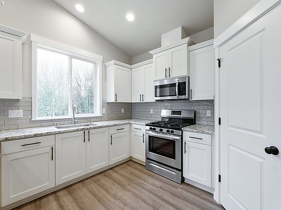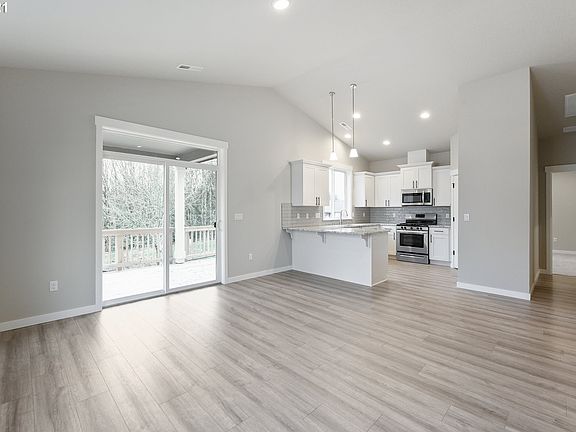 One level living with great room & entertainers kitchen on desirable green space lot. Kitchen with Slab Quartz countertops, full tile backsplash, Alder Cabinets, SS Appliances and pantry. Vaulted great room w gas FP and laminate flooring. Fully fenced, frontyard landscaping & irrigation w/ patio. Teal Crest is surrounded by trees, green space and walking trails.