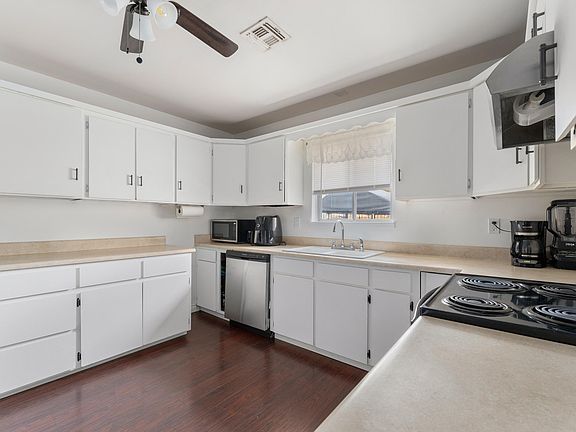 - Ceiling Fan(s), Fiberglass Stall Shower, Laminate Counters, Primary Downstairs, Shower/Tub Combo