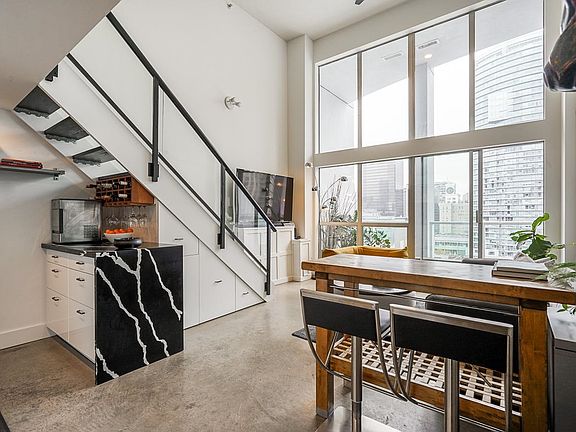 ATTENTION LOFT LOVERS & INVESTORS!!! With soaring floor to ceiling windows, this spacious and airy 2-storey loft offers amazing unobstructed city views. One of the few units that has parking, a locker and a sizeable patio. This open concept home has a large kitchen space, living area & dining on the main floor with a spacious bedroom upstairs. Recent renovations include a tastefully updated kitchen with Fisher Paykel and Bosch appliances. Custom built drawers underneath stairs provide for ample storage. Amenities include gym and massive common roof patio with nearly 360 degree views. Pets and rentals allowed including AIRBNB. A can't miss investment opportunity. This unit will not last. Book your viewing today. Sneak peek Thu May 12 6-7pm. OPEN HOUSE Sat/Sun: CANCELED