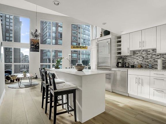 Inner City loft style living at its best with all of Vancouver's amenities at your doorstep, boasting its many shops, coffee houses, restaurants, bistros and multi entertainment venues, close to subway lines and transportation. This bright airy loft in the ""Spot"" has been completely renovated with new kitchen cabinetry, counter tops, large center island, lovely wide plank flooring, remote control blinds & new quality appliances from Miele, Bosch and Subzero. Enjoy the buildings common outdoor panoramic rooftop deck, gym and barbecue area. Short term rentals allowed, please allow time for showings. Pleasure to show.