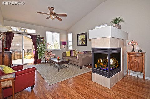 Must see! Beautiful ranch plan w/3 bdrms + office, 3 baths, volume ceilings & open floor plan. Many windows w/lots of natural light. Hardwood floors on main lvl, granite countertops, lrg island, SS appliances incl refrig & gas range, lrg pantry, Alder cabinets, 3 sided frplc, bsmt finished w/bdrm & walk-in closet, 3/4 bath, rec rm & lrg family rm w/built in bookshelves. Bay window in mstr bdrm, 3 car tandem garage, laundry sink & cabinets. Front porch. Low maintenance deck & xeriscaped bkyrd