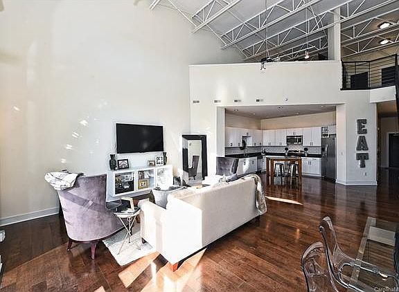 Spacious condo with beautiful finishes in Third Ward. Renovated in 2006. Granite counters in kitchen with stainless appliances and subway tile back splash. 20 ft ceilings, custom hardwoods and new carpet upstairs. Large owner suite upstairs with private guest bedroom on main floor. Large patio off living room. Great lifestyle with easy walk to restaurants, bars, panther stadium and knights stadium.