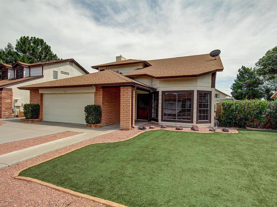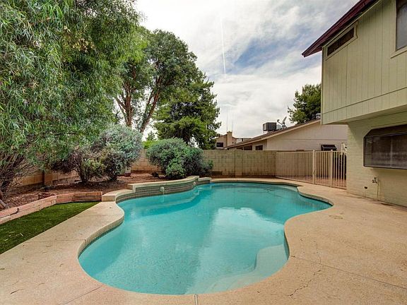 LOCATION & BEAUTY ALL IN A FABULOUS MESA NEIGHBORHOOD WITH NO HOA. WHEN YOU FIRST ENTER THE HOME YOU WILL SEE VAULTED CEILINGS,TILED DECORATIVE ENTRY PIECE & A OVER SIZED LIVING & DINING ROOM. STEP INTO THE SPACIOUS KITCHEN WITH UPGRADED APPLIANCES,CUSTOM TILE COUNTERS,PLENTY OF PANTRY SPACE & EVEN THE REFRIGERATOR IS INCLUDED.THEN YOU ENTER INTO THE BRIGHT GREAT ROOM WITH A BRICK FIREPLACE & WET/WINE BAR FOR ENTERTAINING.THIS 4 BEDROOMS,2.5 BATHS HOME HAS TILE IN ALL THE RIGHT AREAS,CARPET.MASTER BEDROOM IS LARGE, MASTER BATHROOM SHOWER HAS UPGRADED TILE & FIXTURES.OVER SIZED LOT WITH A SPARKLING CLEAN PRIVATE POOL IN THE BACK FOR FAMILY FUN,NO NEED TO WASTE TIME MOWING THE FRONT & BACKYARD,HOME HAS ARTIFICIAL GRASS.2 CAR GARAGE WITH STORAGE AREA & EPOXY FLOORS.HOME IS CLOSE TO EVERYTHING