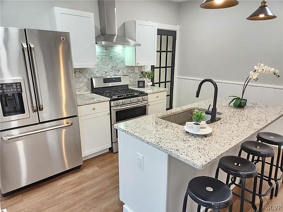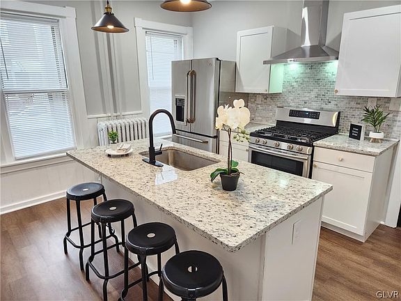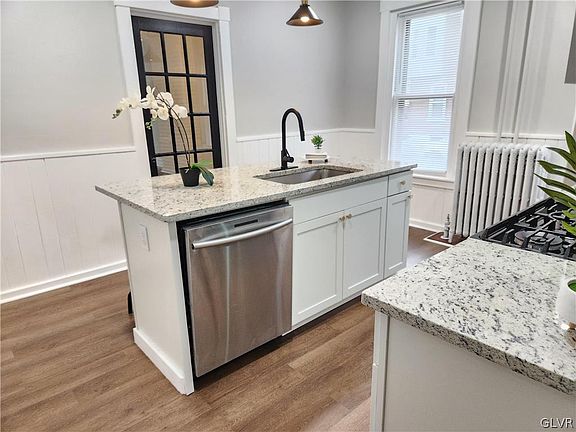 Beautifully Renovated 5 Bedroom, 2 Bath with Detached garage and fenced yard. This stunning renovation brings the best of modern design combined with old world craftmanship & quality into one, turn key, MOVE IN condition home. Modern kitchen design with a large center island for seating, pendant lights, stainless steel appliances & large pantry closet is a cooks delight and will be the heart of the home. The oversized, ceramic tiled bathroom is breathtaking with a large soaking tub and a shower. New flooring throughout, the entire interior is freshly painted. Replacement windows for low energy costs. A first floor laundry with extra space opens onto a small deck & privacy fenced yard, leading to the garage. The front sunporch is awash in natural light for relaxing or use as a garden room. This spacious home has many other features & improvements. You'll see the attention to detail everywhere. New roof, new, HIGH EFFICUENCY Gas furnace, 100 AMP Circuit breaker with room for expansion.