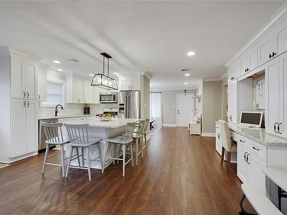 This is a truly fabulous, top notch renovation from floor to ceiling and loaded with natural light. The kitchen and den area are an open concept. The kitchen is gorgeous with granite counters, SS appliances, 5 burner stove, a large granite island, a built-in desk area, and opens to spacious den with gas fireplace. Updated baths, custom closets, great covered patio off den, and pretty backyard. Security system, NEST doorbell/thermostat, and termite contract. Move right into this beauty in a great location!