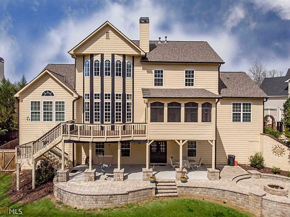 Elegant home situated on a Cul-de-sac, 3 sides stone and brick, custom brick wall and gate, 3 car garage, double ovens, granite, hardwoods on all main floor rooms, master on main, huge closet with natural light, his and hers vanities, sitting area in master, second first floor bedroom with bath, double sided fireplace -keeping room-family room. 3 bedrooms upstairs with baths, huge loft area with built in bookcases and storage window seats. Fenced yard with play set and gate to walk way to Braselton’s River Walk Trail Covered and open deck. Covered and open patio with firepit. Full basement with double doors to patio*** ammenities: lifeguarded pool and fitness area with lighted tennis, walking trail to water falls