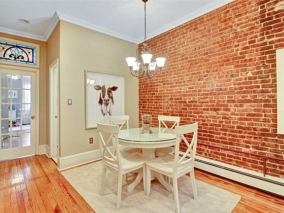 Stunning 2 bedroom, 1.5 bath in a great uptown east location! This spacious home has a warm and distinctly Hoboken appeal while boasting modern upgrades. Sunny east and west exposures gleam across the hardwood floors throughout the almost 900 square feet of living space. Generous living room with classic exposed brick, crown molding, and recessed lighting allows for a true dining area. Stained glass windows (transoms), original pocket doors, french doors, 9.5 ft ceilings, and custom wainscoting are just a few of beautifully appointed accents. Modern kitchen features stainless steel appliances, granite counters, and full size pantry. On-demand tankless hot water heater and 6 closets with storage above complete the home! This well maintained building features a shared patio for grilling and outdoor entertaining, free additional laundry on site, designated storage, and a locked bike room as well! Easy commute to NYC with the 126 bus just steps outside your door. Close to Trader Joe's, Columbus park, as well as some of best restaurants, bars and shopping Hoboken has to offer! Garage parking may be available for rent in the municipal lot right between 9th and 10th on Garden Street!