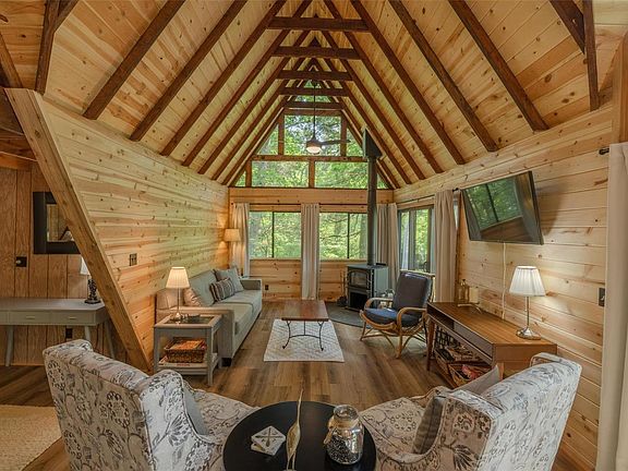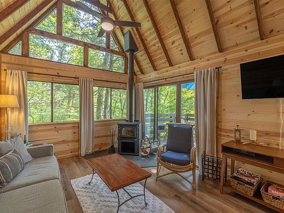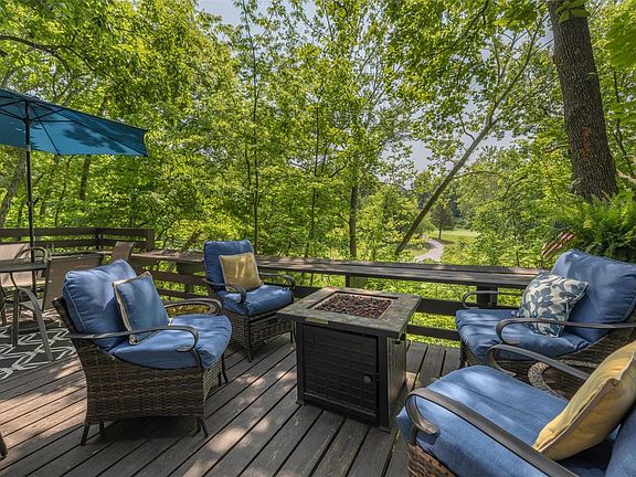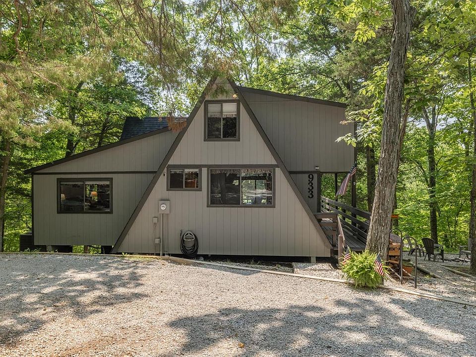 Welcome home to this stunning chalet located in the desired Innsbrook community. Hidden between towering oaks and Midwestern foliage, this cozy recreational home offers the perfect amount of open living space paired with amazing views of the golf course and the third tee box from the moment you enter the front door. The rustic design features 2 bedrooms, 1.5 baths, a sleeping loft, wood-burning fireplace, separate kitchen and dining area, expansive deck, outdoor fire pit area, and much more! Floor to ceiling windows surround the main level living space creating “treehouse” views of the woods and fairways beyond, while vaulted ceilings and beautiful millwork highlight the property’s unique characteristics. Recent updates include a brand new roof, new pine ceilings in the great room, fresh paint and new flooring throughout, upgrades to both bathrooms, new refrigerator and stove in 2022, and new HVAC system in 2023. You don’t want to miss out on this one-of-a-kind Innsbrook gem!