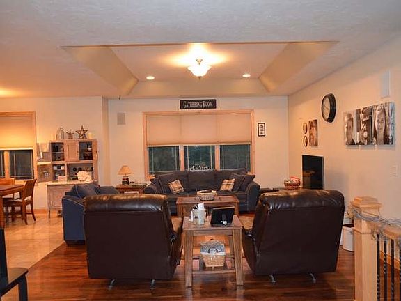 If you are looking for a beautiful newer home complete with acreage and deer watching, this home has it all! Hand-crafted by the owner, this home includes an amazing entrance, walnut flooring, travertine tile, 9' ceilings, a great room with tray ceiling, large kitchen pantry, open concept kitchen with dining and great room, first floor laundry, walk-in closets, patio doors, and covered porch. The basement includes a large family room, separate exercise room, bedroom, bathroom, root cellar, a large storage area or play area, and laundry room. You can enter the home through the 3 car garage going upstairs or downstairs, with the downstairs entrance having a sink area, laundry, and storage for hunting clothes or other items. Also downstairs you will find a separate door leading to a recreational equipment room where you can store your lawnmower, bikes, ATVs, etc. Home includes fields, pines, and an outdoor wood stove with shed. This is a one-of-a-kind home with perfect country living!