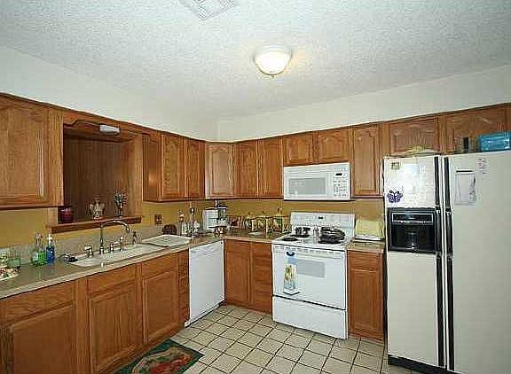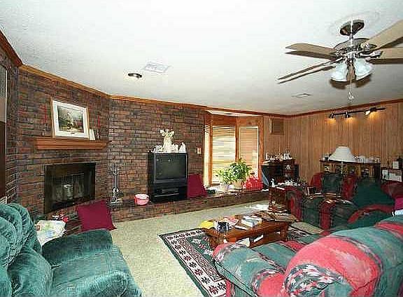 Large family room/combo w/woodburning fireplace and full bath. Formal living. Updated kitchen w/corian counters, built-in microwave and large eating space. Master has his and her closets. Covered patio. Oversized garage.