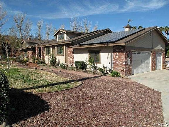 Nice horse property and great home with many custom features! Property located at the end of a quiet street. Single story ranch with 3 beds & 2.5 baths, plus office with custom built shelves or 4th bedroom. Approx. 3000 sq. ft. w/permitted addition. Remodeled kitchen with new cabinets, granite counters, self closing hardware and jenn air appliances. New carpet, tile and wood floors throughout. Low E windows, super insulated, tank-less water heater, whole house fan in attic. Trex front deck w/all new treated lumber framework. Custom rear deck w/large brick and concrete patio and fire-pit. RV parking w/30amp hookup. Barn Master 4 stall barn, tack room and storage. Arena, wash rack, tool storage, hay storage, and hot walker. Low tax rate and no special assessments. Oak trees, palm trees, fruit trees and large garden space.The list goes on and on, you must come and see this quiet retreat!