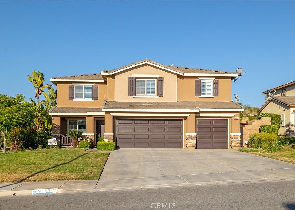 Welcome to Rockrun Ct, a desirable home nestled in Riverside's Orangecrest neighborhood. This spacious 5-bedroom residence offers an inviting open floor plan, perfect for comfortable living and entertaining. As you enter, you'll be greeted by wood plank tile flooring and find your way into the beautifully remodeled kitchen, featuring an island and newer appliances. The main level also includes a convenient bedroom and a bathroom, providing flexibility and ease of living. The attention to detail extends throughout the home with shutters that enhance elegance and privacy. Upstairs you will find a spacious loft, primary and additional bedrooms. Step outside to the backyard retreat, where you can unwind or entertain under the alumawood patio cover. Complete with ceiling fans and lighting, this outdoor space is perfect for enjoying the fresh air and hosting gatherings. LOW HOA and Close to Schools, Parks, Restaurants, and Shopping.