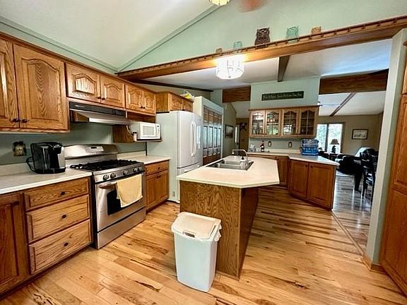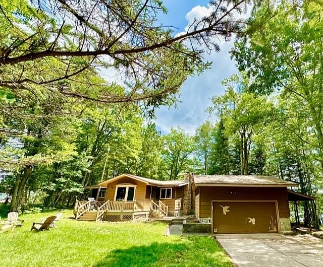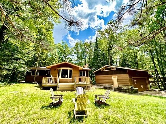 BEARSKIN LAKE HOME. Year ‘round 3 BR, 2 bath home located in a great location between Minocqua and Rhinelander. The main floor boast Hickory hardwood flooring, a well-planned and spacious kitchen w/pantry and breakfast nook plus a seperate dining area. Main floor laundry and master BR, guest BR and full bath. A lakeside great room with stone woodburning FP. The walk-out lower level has a large family rm, fireplace, BR and bath. Enjoy morning coffee on the deck or listen to the the songs of the Loons from the lakeside deck. Landscaped steps to 147’ of lake frontage, 1.83 acres. 2 car det. garage plus a 48x30 Cleary building. Easy access to Bearksin Trail for biking and snomobiling. Bearskin Lake is a full rec, 400 acre lake known for fishing and offers year 'round recreation.