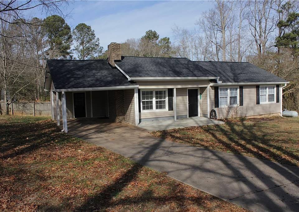 Affordable 100% Financing in USDA eligible area!! NEW ROOF! country home with southern charm sunlight streams in through the energy efficient double paned windows of the 3 bedrooms 2 FULL updated bathrooms on a LEVEL .66 +/- corner acre of land. No HOA, bring your camper, cars, toys, corn poke, horseshoes, pets, etc. Sought after step-less Ranch styled home with room for relaxing rocking chairs on the front porch. Through the carport is a workshop/storage area. STEP-LESS to enter the home. When coming from the side with groceries, step into the Open Eat in Kitchen area and laundry with washer and dryer hookups. The kitchen opens to the back deck and ready for fun cookouts and lots of entertaining. The Kitchen has Granite countertops, vintage cabinets, pantry and appliances. Real Masonry Fireside Living Room with access to the front door. The entire home is move in ready. There are Freshly painted walls and durable easy care vinyl wood-looking flooring throughout. Owner's Suite is privately set at the rear of the home with an oversized custom subway tiled shower. A linen closet is accessible in the hallway is great for additional storage. Modern sinks have been installed in both bathrooms. The hall bathroom includes a convenient bath/shower combo and beautiful marble like tile. Ceiling Fans and Central Heating and Air include updated thermostat and newer A/C unit. (with propane tank only used as backup).Established, mature trees, and flowers growing with more space for a beautiful garden. According to tax records this land is Zoned A1 and neighbors have had chickens and other small farm animals in the past. Great yard for a firepit Clean encapsulated Crawlspace with Dehumidifier. Close to schools, restaurants, grocery stores, historic Pooles mill park, additional ball playing at Ducktown Park, hiking up Sawnee Mountain, running bike dog walking trails along the Greenway, and shopping.