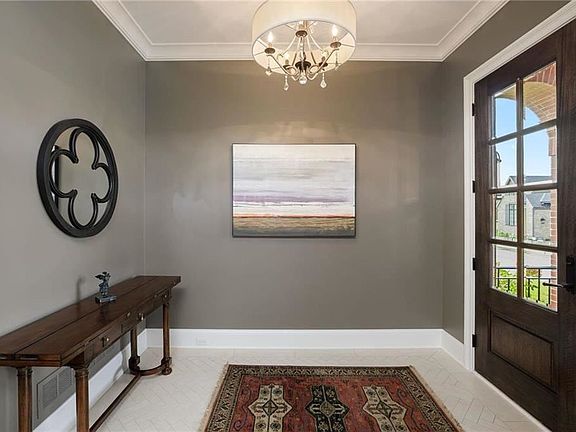 Gorgeous nearly new custom-built home where modern luxury mixes with classic architecture against a backdrop of trees, lakes & walking trails. Handpicked custom light fixtures, luxurious finishes, & light, airy, open living spaces make entertaining a dream. Kitchen & prep-kitchen are a chef's delight. All bedrooms are very spacious & have en-suite baths. Indoor living easily flows into the private outdoor areas with screens operated by remote. Don't miss the special area for the dogs! Finished basement is a bonus!