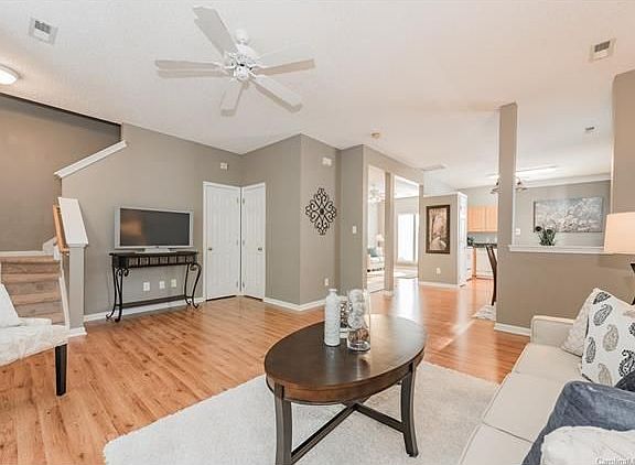 Less than one mile from both I-77 & I-485 & the shops at Northlake Mall (and REI), this home is also just minutes from Uptown Charlotte! This nicely appointed, end unit town home has brand new laminate flooring as well as brand new carpet! The main floor features a kitchen with ample cabinet storage & counter space with a nice dining area as well as TWO living/flex areas. One of the main floor flex spaces could easily be converted to a 3rd bedroom or used as a dual purpose space such as den & office. Don't miss the patio that (per the seller) is wired for a hot tub. Upstairs you'll find a dual master style floor plan & the washer/dryer stay!! This unit is priced less than recently sold units of comparable size and we assume will sell very quickly! Don't miss out!