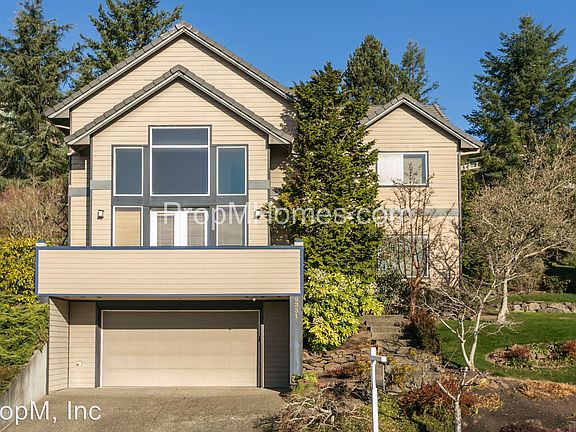 Outstanding and Beautiful Three Bedroom, Three Bath in Forest Heights Neighborhood! - Neighborhood Located in the desirable Forest Heights neighborhood which offers a superb area with close proximity to Rivers, Parks, Shops, the Zoo, Pitlock Mansion and easy commute to downtown Portland, Intel and Nike. Living Area Beautiful Custom home with over 2900 square feet. Loaded with amenities including Great Room with 20 foot Ceilings. Floor to Ceiling windows, picture windows, or large sliding glass doors in almost every room!. Gorgeous rock fireplace. Spacious kitchen with plenty of Cabinet Space! Craftsmanship is over-the-top with Fir Doors and Alder window trim which is just stunning! Walk out to Private, Flat Backyard. Kitchen This lovely Gourmet kitchen features Granite and Stainless, gas stove, island with breakfast bar, and open to the dining area which has a gorgeous wooded view through the sliding glass doors to the outside lawn. Bedrooms/Baths There is a den with picture window providing wooded views downstairs. Going upstairs there are three large bedrooms all with oversized windows for outstanding views. The Guest bath downstairs is replete with tile counters and octagonal sink. The en-suite master bath features a jetted soaking tub with views, dual sinks and huge vanity mirror. The third bath features a tub/shower combination and is convenient to the two bedrooms upstairs. Exterior/Parking Beautiful grounds featuring a very large lot with professional landscaping. Partially fenced with a large grassy area and backdrop of trees and woods. Also mountain views through the greenery. There is a large two car attached garage offering additional storage.
