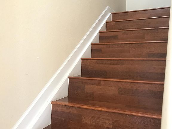 hardwood stairs, stainless steel appliances, granite counter top