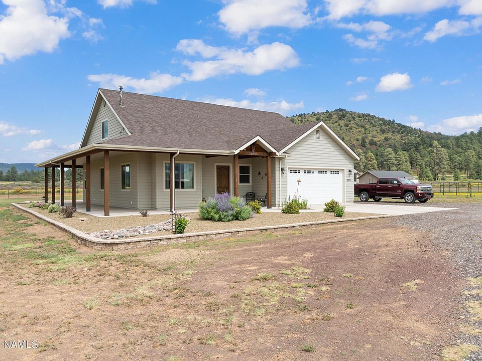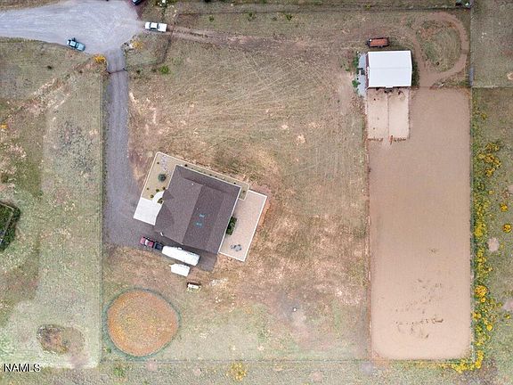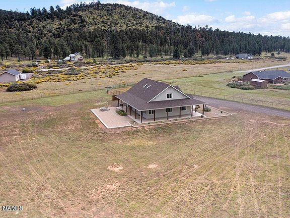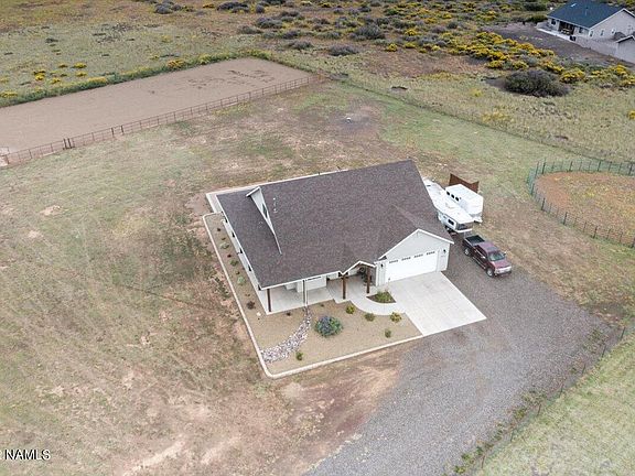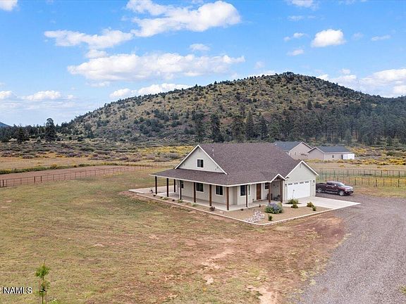 Amazing property and newer home on nearly 2.5 acres backing undeveloped land with spectacular views. Meticulously cared for, 3 bedrooms, 2.5 Bathrooms, master suite on the main level along with an office, upstairs you'll find 2 more bedrooms, a full bath and sitting area/play room. The open floor plan offers a gorgeous pellet stove, separate laundry room, stainless steel appliances, breakfast island, granite counter tops, home is prewired and set up for an A/C unit. Outside you'll find a wrap around porch, paver patio, irrigation lines for landscape. A new 36x36 barn with water and power has been installed, horse stalls and a large turn out all fenced, perimeter is fully fenced with welded pipe along with an entry gate. Forest Service access to miles of trails, don't miss this opportunity