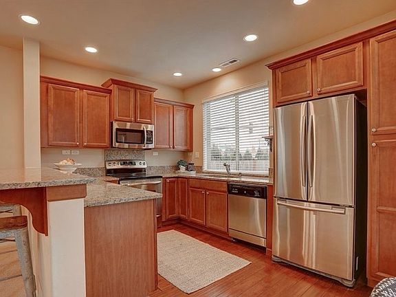 Welcome home to this beautiful 3-bedroom, 2.5-bath home located in the desirable Gem Heights neighborhood! Step inside to soaring ceilings and an open-concept layout filled with natural light. The spacious living room features a cozy fireplace and large windows, creating a warm and inviting atmosphere. The kitchen features a breakfast bar, ample cabinetry, and a seamless flow into the dining area, making it perfect for entertaining. Upstairs, you'll find well-sized bedrooms, including a primary suite with an ensuite bath. Enjoy the fully fenced backyard, complete with a patio and green space, ideal for outdoor gatherings, play, or relaxation. Conveniently situated near schools, local shops, dining, and with quick access to Hwy 512, this home offers both comfort and accessibility. Don't miss your chance to live in one of the most sought-after communitiesschedule your showing today! The application fee is $45 per submission. Pets on a case-by-case basis.