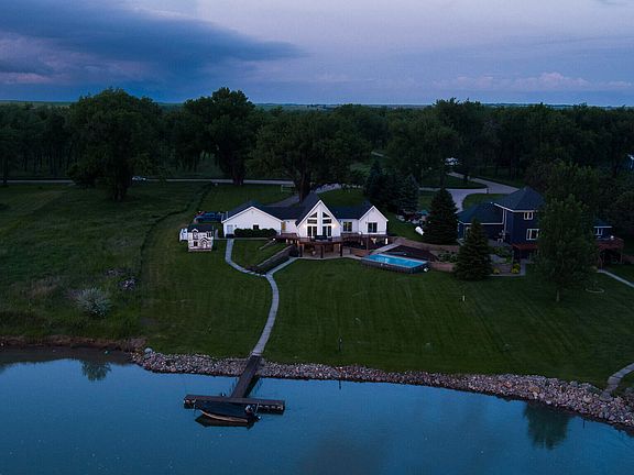 This home is located on the Missouri River in Northwest Bismarck! This stunning property features floor-to-ceiling windows that frame the soaring cathedral ceilings in the living room, showcasing breathtaking views of the river from sunrise to sunset. The oversized windows and patio doors on the main level have been upgraded to energy-efficient triple-pane glass.