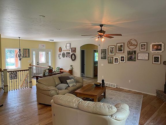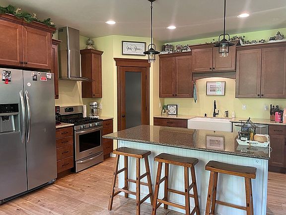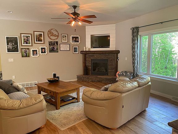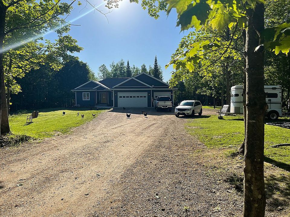 Modern home filled with lots of natural light and surrounded by peace and quiet with the best neighbors. Located on 20 acres with a wooded view and a natural pond within view of yard, and lots of wildlife/deer travel. Great hunting, and a start of hobby farming. Features quality wood and tile flooring throughout upstairs in an open concept design. Natural gas stone fireplace in living room. Kitchen features a farmhouse sink, huge island with storage and eat in side, step in large pantry, and quartz counter tops. Large master bedroom with tray ceiling, master bath with double sinks, walk in shower and large built in armoire. Large walk through master closet also connects through pocket doors (we leave open) to laundry room and back foyer. (Really great for putting clothes away!) Two kids rooms on north end of home with double sinked bathroom between. Tons of storage space everywhere. Attached three car garage insulated with separate garage heater. 1025 finished space in basement with vinyl plank flooring, including what could be a entertaining area or made into another large bedroom and the tiled clawfoot tub bathroom and bedroom/office pictures. Two large unfinished storage areas with shelving as well. Basement has access from both the living room open stairs, as well as a stairway from the garage. Deck off the dining room, leading to nice wooden swing set and inexpensive pool that would stay. Exterior is SmartSiding. 18x20 metal/cedar building with a lean too used as a barn currently, and two small pastures fenced with solid fencing and wired fence. Adorable chicken coop that matches the home too. All set up for a small hobby farm / farmette. Currently have horses, ponies, goats, and chickens.