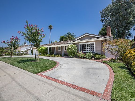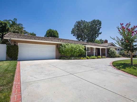 Welcome to this beautiful single story traditional home located within one of the most sought after neighborhoods in Northridge. This meticulously maintained home has exceptional curb appeal with a sprawling brick ribbon circular driveway, manicured landscaping and wide front porch. Through the inviting double door front entrance you'll find beautiful travertine floors, as well as smooth ceilings, crown moldings, recessed lighting, built-in cabinets, fresh paint and a cozy fireplace. The travertine floors flow into the updated kitchen appointed with white cabinets, granite countertops, a dbl oven, gas stove, built in refrigerator and charming breakfast nook that looks out over the backyard. Adjacent to the kitchen is a spacious dining room with French doors that open to the spectacular entertainer's dream backyard. Outside you will experience true resort style living with the perfect balance of custom hardscape and mature landscape in this lush yard. The incredibly private nearly 12,000 sq. ft. property features a sparkling pool/spa, multiple patio areas, built in BBQ, fire pit and a grassy area large enough to accommodate a sport court, playground or possible ADU. All of this plus 3 spacious bedrooms including a master suite with two closets and one additional full guest bathroom make this home a must see!