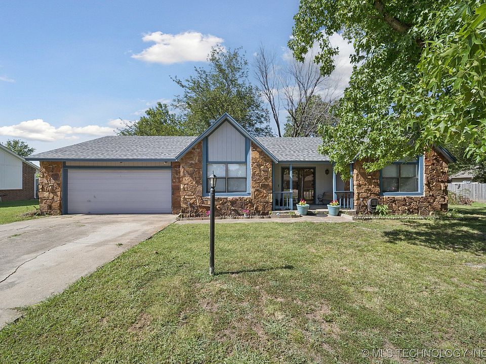 Welcome to this charming home that blends classic appeal with modern updates, located in the highly sought-after Verdigris School District. Nestled in a serene neighborhood, this delightful residence features three bedrooms and two baths, offering ample space for your family's needs. The inviting large living room, complete with a cozy wood-burning fireplace, sets the perfect scene for family gatherings or quiet evenings at home. The kitchen has granite countertops and abundant storage space. Discover a versatile bonus room that awaits your personal touch, ideal for an office or dining area tailored to your needs. Appreciate the freshly painted interior and exterior, which enhance the home's warm and inviting atmosphere. Step outside to the expansive covered deck, perfect for entertaining or enjoying tranquil moments overlooking your spacious backyard. This home is a true gem, providing both character and comfort in a desirable location.