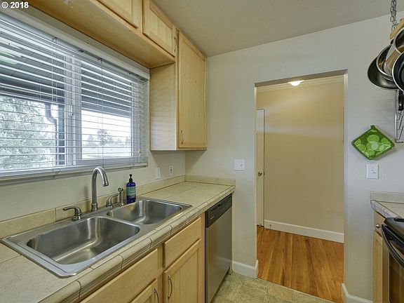 Stylish & efficient! Upper level condo. Updated kitchen with tile counter, opens to living room, large windows east and west. Hardwoods in living room and bedroom. Spacious bath. Good storage, full sized closet with organizer, hall storage closet, & storage unit in basement. Deeded carport parking. On transit line. Blocks to the heart of St Johns for shopping and restaurants. Near the St Johns Bridge, Pier Park, & Cathedral Park.