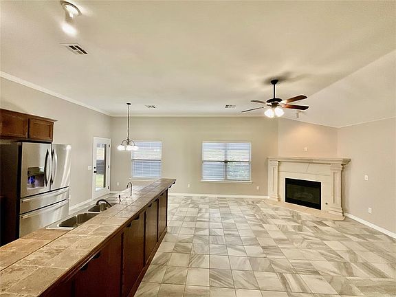 LIVE WELL in Midwest City! Peaceful community where every neighbor exudes pride of ownership. This residence is sited on a sprawling lot. TIMELESS, well-crafted brick home with a functional floor plan. This home offers an open concept with beautiful tiled floors, a cozy fireplace, and stainless steel appliances in the kitchen. In the primary suite you'll find double walk in closets with an en suite bathroom featuring a stand up shower and a spacious soaker tub that's perfect for a relaxing bath on those long days. The front bedroom features a large bay window with built in dual book shelves and the third bedroom offers in room access to the main bathroom. The quiet neighborhood is located just 3 miles from TAFB, easy access to I40 and just minutes from restaurants and shopping. The good ones are going fast! SEE TODAY!